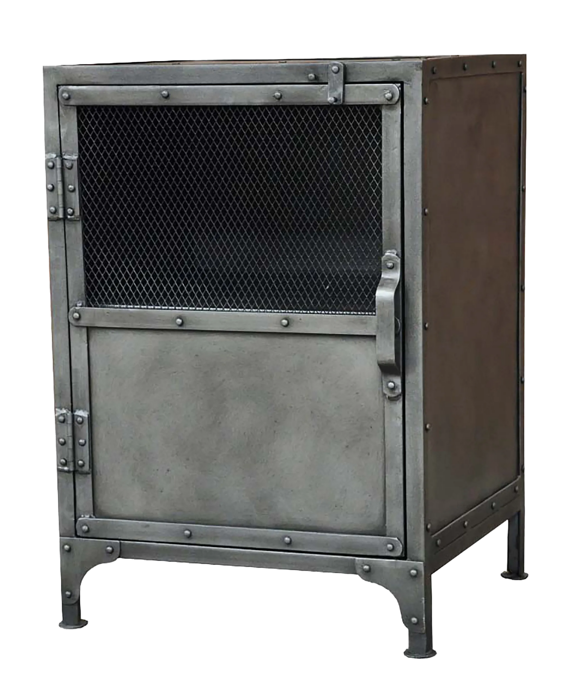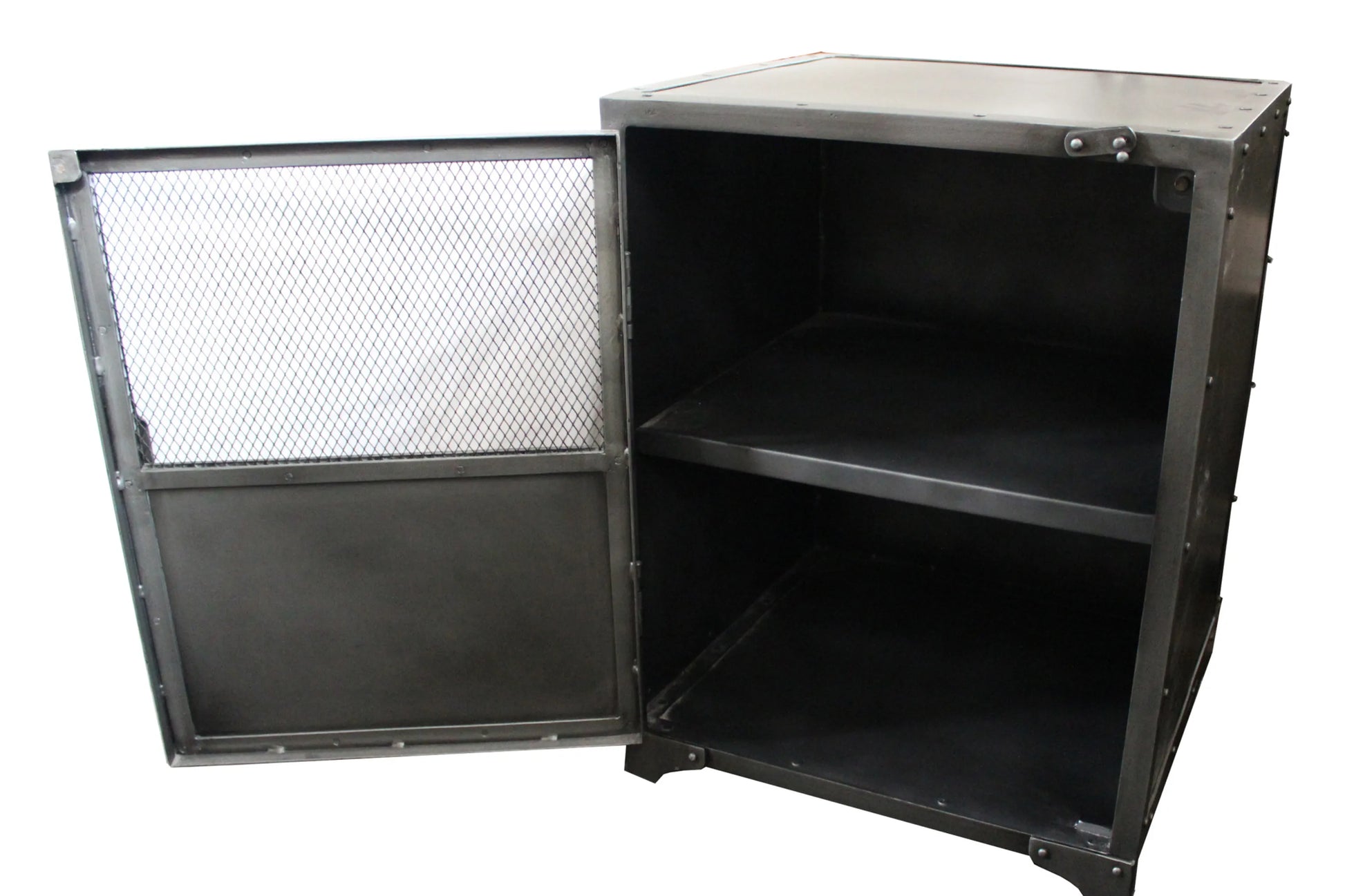 Add a fashionable storage option to your space with this 20-inch silver metal accent cabinet with two shelves. This versatile cabinet features a rustic handcrafted modern industrial style in a dark silver gray finish. Its a high quality piece, made from premium grade metal. Storage vessels don't have to be unsightly. Increase your storage space and the fashion quotient of your room with this hard wearing, versatile, and good looking cabinet. 29-inch h x 20-inch w x 18-inch d.
