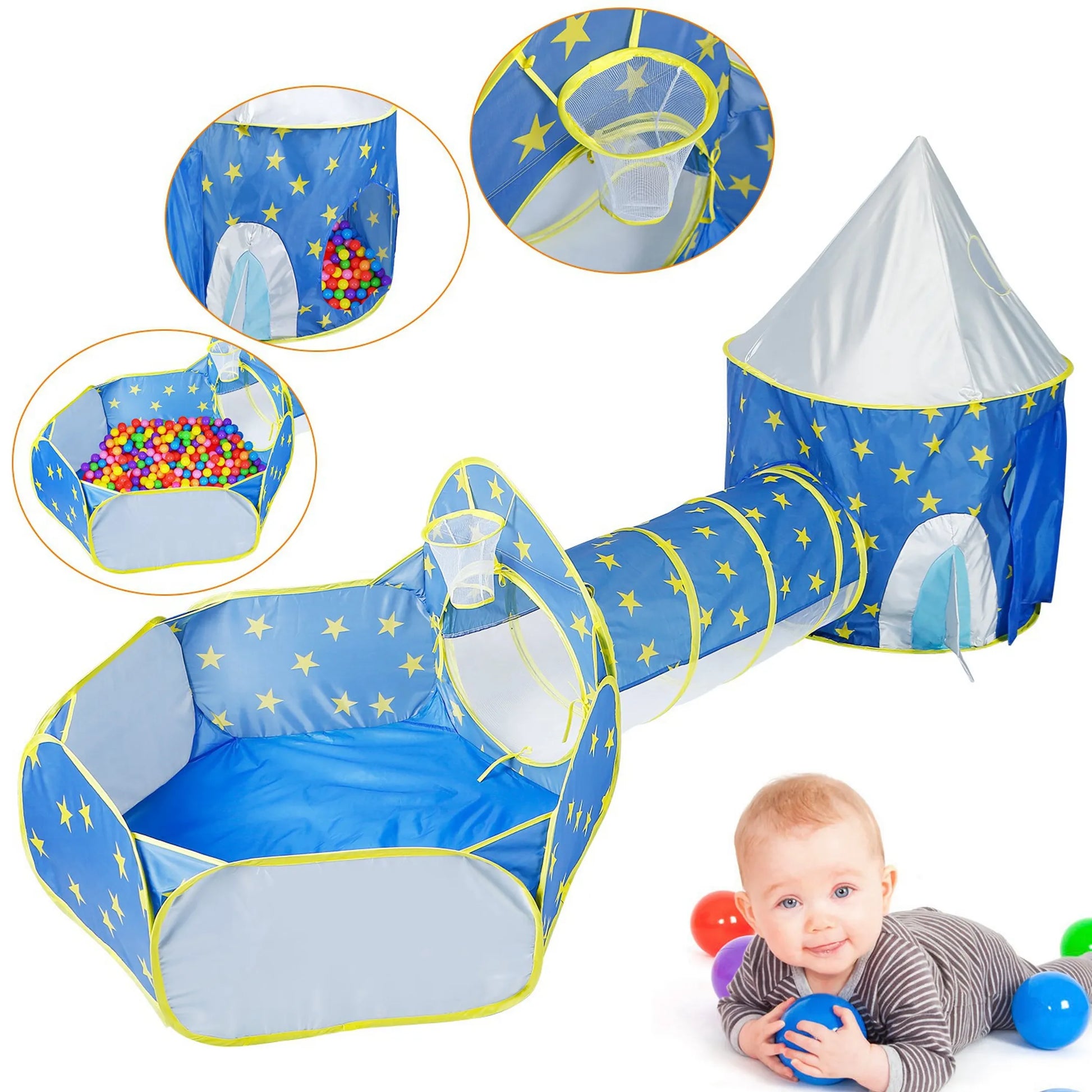 3 In 1 Child Crawl Tunnel Tent Kids Play Tent Ball Pit Set